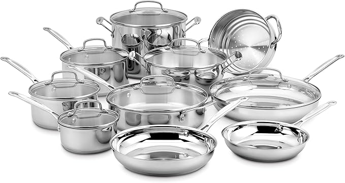 • PREMIUM STAINLESS STEEL: The Cuisinart Chef’s Classic premium stainless steel pots and pans set with aluminum-encapsulated base heats quickly and spreads heat evenly, eliminating hot spots for optimal cooking performance.