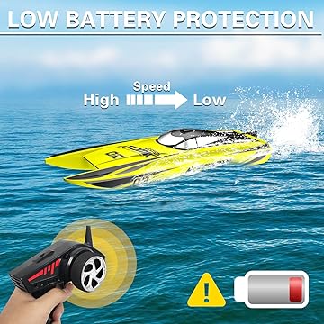 【GREAT RC RACING BOAT FOR OUTDOOR ADVENTURE TRAVEL】Operates on 2.4GHz control with over 656ft range and strong anti-interference ability, allowing multiple boats to race together.